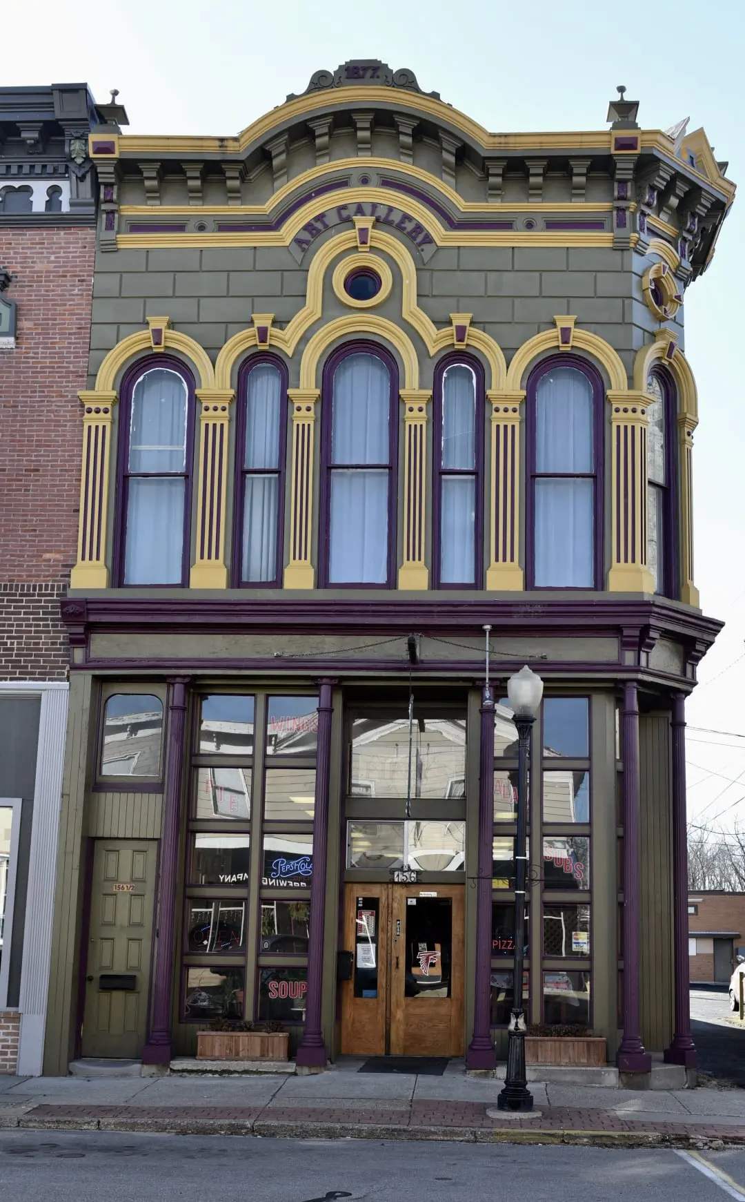 The Art Gallery Building was constructed in 1877 for George I. Crossett to house his Crossett Drug Store on the first floor, along with a photographic studio on the second floor. The studios on the second floor led to the name of the building. Over time, the second floor space was occupied by photographic studios operated by Arthur Swain, G. T. Stephens, D. C. Moyer, among others up until the 1920. A series of pharmacies occupied the first floor until the 1960s. A fire in 1970 destroyed some of the lower floor trim.